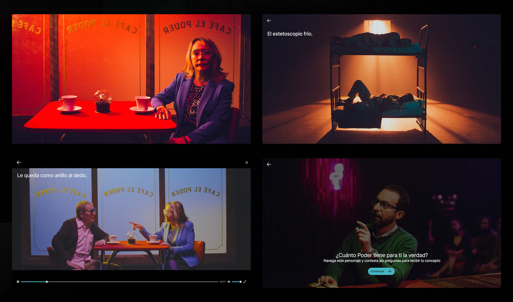 Proyecto convergente de RTVC, el sistema de medios públicos que busca mostrar, a través de diferentes puntos de vista de sus protagonistas, realidades distintas ante un mismo suceso, las cuales varían según quién, cómo y cuándo lo mire. En su primera temporada, el proyecto se centra en una historia de ficción que explora el concepto de poder en las relaciones entre diversas personas.